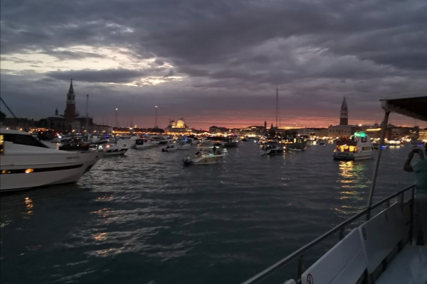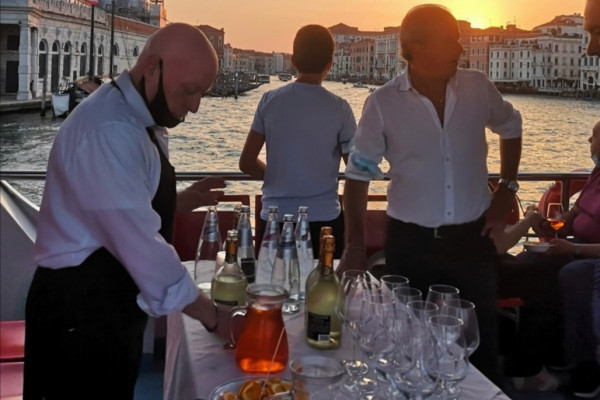Panoramic cruise with aperitif and fish dinner served on board. Navigation with explanations among the islands of the Lagoon of Venice. We will admire the Votive Bridge on the Giudecca Canal (set up only once a year, i.e. only during the Redentore evening), the Island of San Giorgio, the Arsenal, the smaller islands and Murano. We can then see in the horizon the island of Burano, Sant'Erasmo, the "Mose" project (against high water) and Lido di Venezia. Then return to St. Mark's Basin to admire the fireworks display that will light up the Lagoon from a privileged position in front of St. Mark's Square.