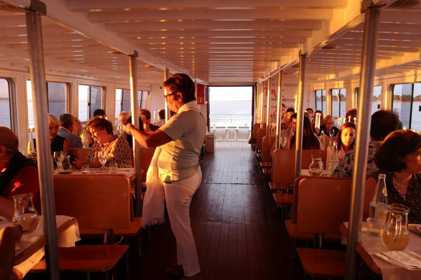 Double-deck boat with internal lounge, large upper terrace and toilets. Return at approximately 1.00 am.