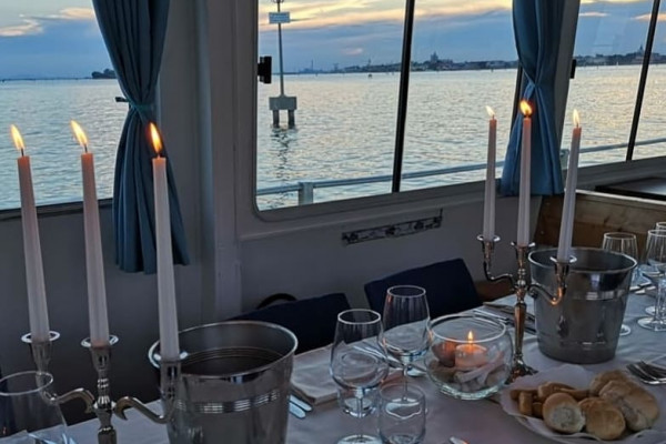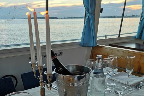 Venice by candlelight, a panoramic cruise with a romantic dinner served on board. The sunset over Venice will be the perfect setting